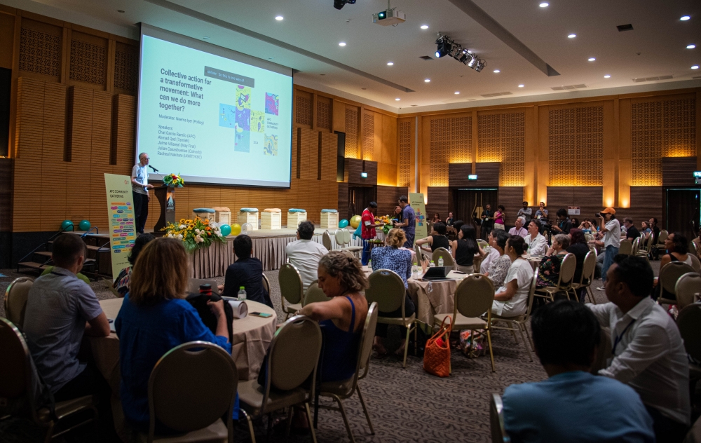 We helped build shared understandings of digital rights challenges faced across the world by engaging in important regional and global events. These included the Global Gathering in Portugal, the 2024 Digital Rights Asia-Pacific Assembly (DRAPAC24) in Taipei, and the annual AWID Forum in Bangkok. At AWID, members and partners participated as organisers, speakers and moderators at sessions, and hosted activities that advanced a collective feminist approach to digital technologies. DRAPAC24 aimed to foster resilience and solidarity within the digital rights community and involved 150 organisations in two days of conversations on open technology, empowering the youth, and developing regional solutions to tech challenges. APC members were supported in their participation in the Global Gathering through our Member Engagement and Travel Fund (METF), allowing them to share expertise and develop new partnerships aligned with their digital rights work.